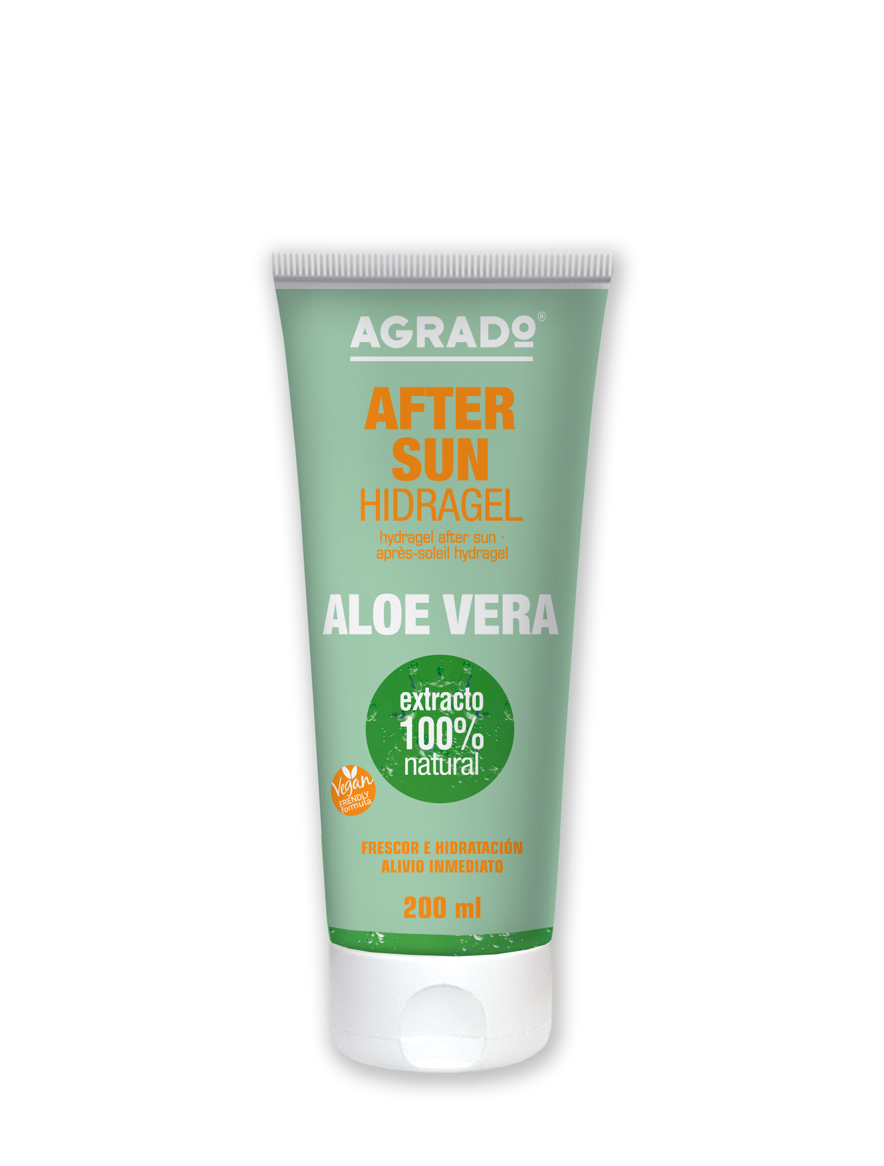 La texture rafraîchissante et facile à étaler de l’Hydragel Après-Soleil AGRADO, ainsi que sa formule à l’Aloe Vera 100% naturel et la Glycérine, ont un effet émollient qui hydrate, apaise et répare la peau après l’exposition au soleil.